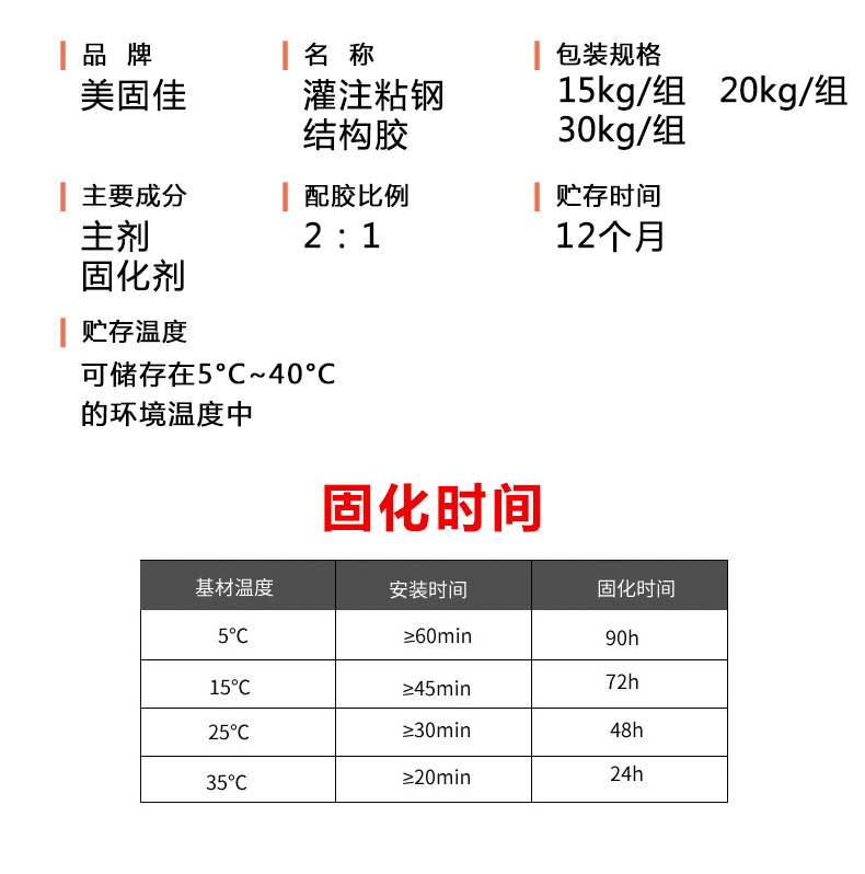 【品 牌】 美固佳【品 名】 灌注粘鋼結(jié)構(gòu)膠(灌注膠)【型 號(hào)】 MGJ-500G【規(guī) 格】 30kg/組(A膠20kg+B膠10kg)【配膠比例】 2:1【用 途】 包鋼加固【資 質(zhì)】 安全性鑒定測(cè)試報(bào)告、合格證、質(zhì)保書(shū)【說(shuō) 明】A級(jí)膠,檢測(cè)包過(guò),量大價(jià)格從優(yōu),歡迎合作洽談。